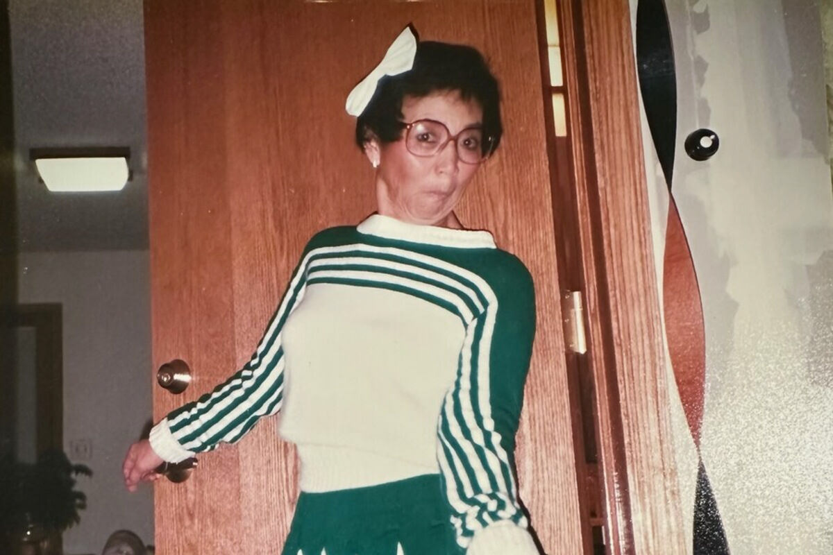 Mabel "G" Miyasaki wearing Meri's cheerleading uniform in 1987. "We think this picture really represents her spirit," Meri said. (Photo Courtesy of Meri Miyasaki)
